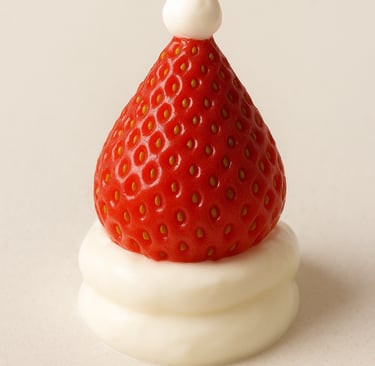 Remove the stem, add a small dollop of yogurt, place the top back on, and add a tiny โpom-pomโ dot on top. A cute Santa hat your toddler will love!